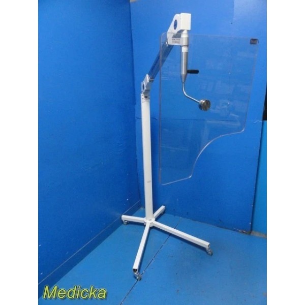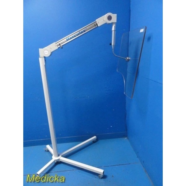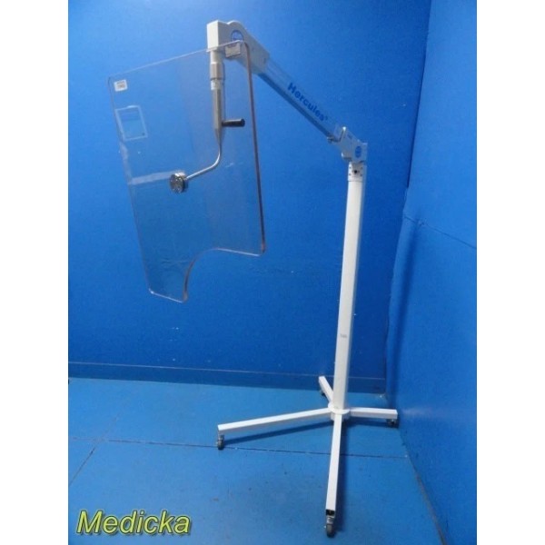 AADCO RayShield Hercules Mobile Lead Acrylic Radiation Barrier with torso cutout. Designed for interventional radiology, fluoroscopy, and surgical imaging procedures, this unit features an overhead swing arm, fixed-height stand, clear lead acrylic panel, and a mobile 5-caster base for convenient positioning and shielding.