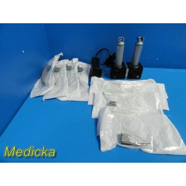 Heine NT300 Desk Charger W/ F/O Handles & F/O MAC/MIL Laryngoscope Blades~ 27389