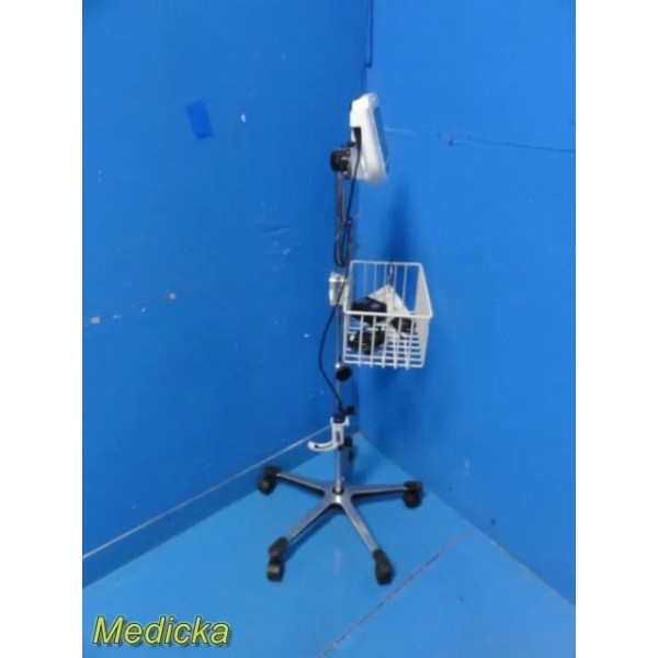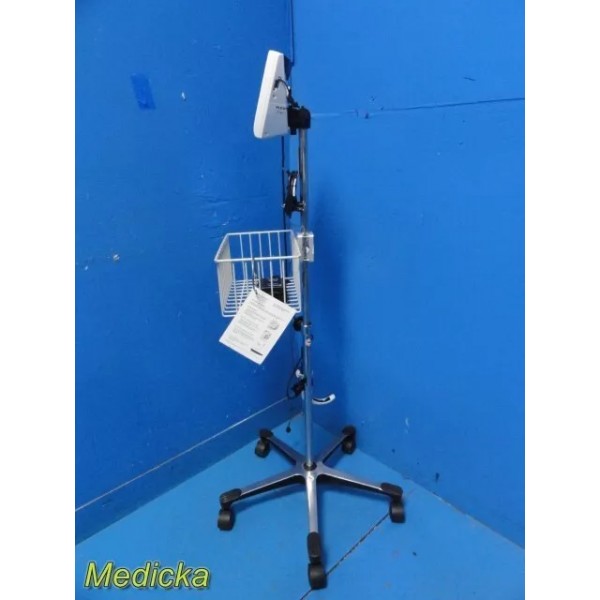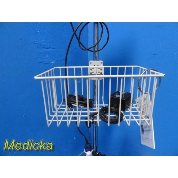 - Height Adjustable Stand with 5-wheel caster base and basket.