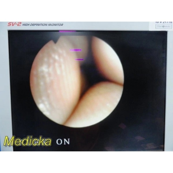 Image Quality: Tested using an endoscopy tower. Image is clear and detailed. 4 broken fibers are visible, especially on white backgrounds.