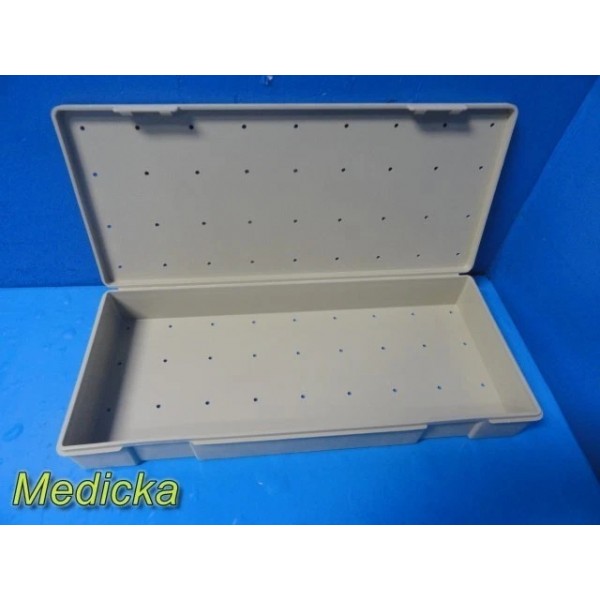 Sterilization storage container with fitted base, lid, intact latches & hinges