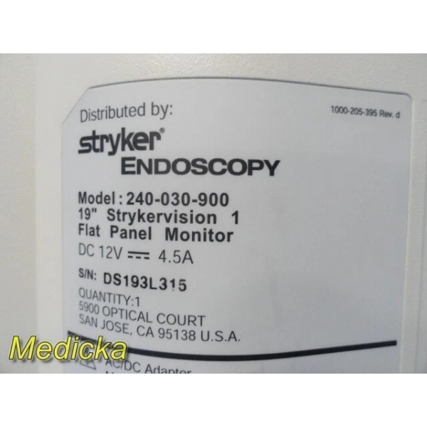 Stryker Endoscopy Vision 1 Ref 240-030-900 19" HD Monitor