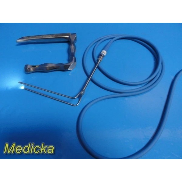 Pilling 52-2225 Adult Dedo-Pilling® Micro-Laryngoscope with bifurcated light carrier and P358PRA Blue Fiber Optic Cable (8 ft, 3.5 mm bundle). Tested and transmitting light properly.