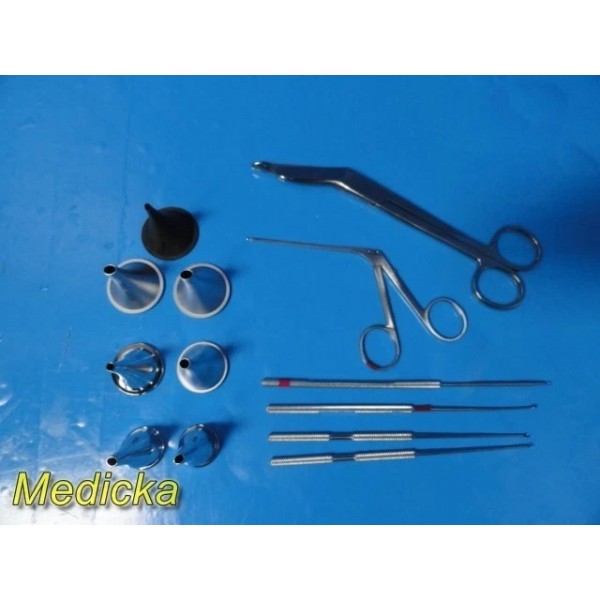 - V. Mueller, Miltex, Jedmed ENT Ear Wax Removal & Examination Instrument Set (Includes Curettes, Forceps, Specula, Scissors) Lot of 13