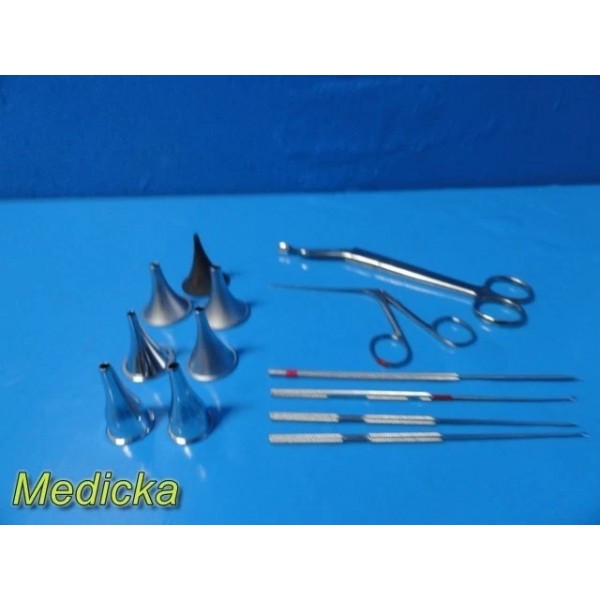 Item: | ENT Ear Wax Removal & Examination Instrument Set – Curettes, Forceps, Specula, Scissors – V. Mueller, Miltex, Jedmed (13 Pieces) |