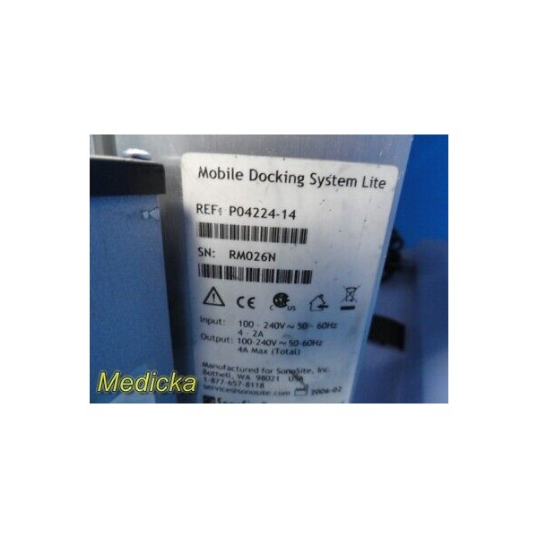 It is a compact and lightweight system that is easy to move from one location to another, making it ideal for use in various clinical settings. Sonosite Micromaxx Mobile Docking System Lite provides a convenient way to charge the ultrasound machine while it is not in use. It also serves as a storage location for the transducer, helping to keep the system organized and easily accessible.
