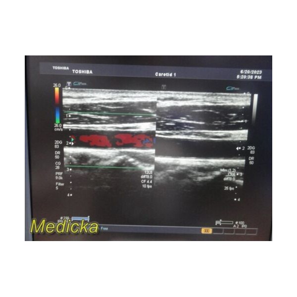 Body Scan : Review the Vascular Scan performed of the right Carotid> Observe the lumen> color flow is FAIRLY GOOD, No other parts scanned