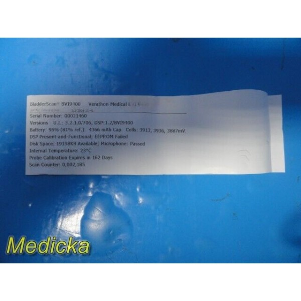 Item: | Verathon 0570-0190 BVI9400 Bladder Scanner W/ 570-0351 Probe, Battery & Charger (Probe undercalibration) |