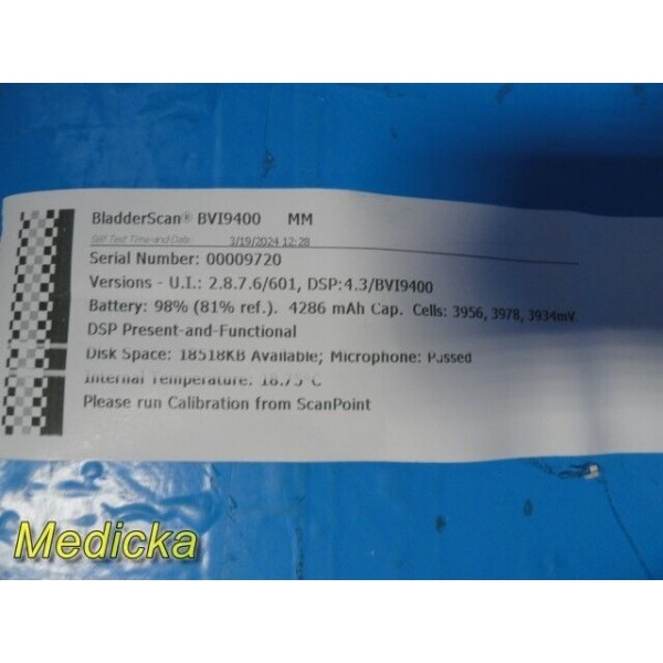 Verathon BVI9400 P/N 0570-0190 Bladder Scanner W/ Probe & Battery Pack ~ 34004