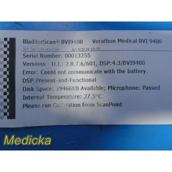 Verathon BVI9400 Bladder Scanner W/ Battery & 0570-0351 Probe ~ 34694
