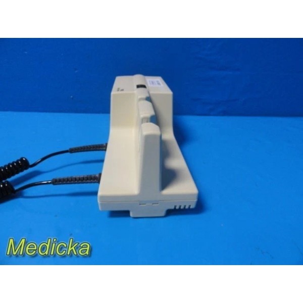 Pre-owned diagnostic wall transformer in good working order. Includes 2x handles with coiled cables and power cord. Unit shows minor cosmetic wear (scratches/scuffs), but no cracks or dents. On/Off switch and handles function smoothly. Coiled cables are over-extended yet intact with no cuts or tears.