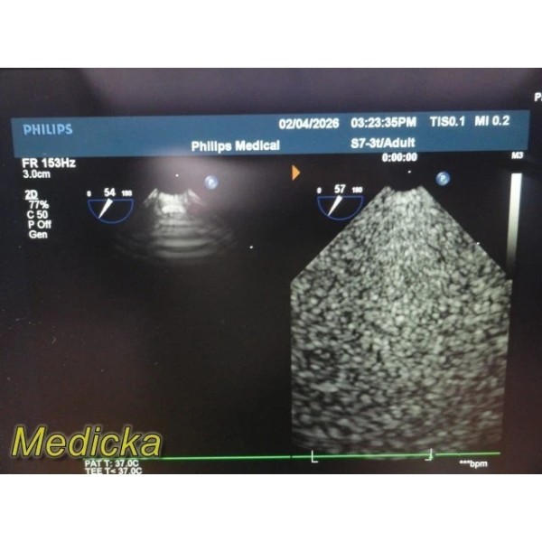 This TEE probe is sold as-is with limited in-house testing performed. Only basic power-on, air scan, phantom attempt, and minimal carotid visualization were completed using a Philips iE33 system (not included). Full cardiac functionality, Doppler performance, and clinical suitability have not been verified. Buyer is strongly advised to have this probe professionally inspected, calibrated, and certified by qualified biomedical personnel prior to any clinical application.