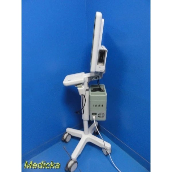 Both right and left probe ports are present, intact, and functional. Probe holders are installed on both sides of the cart.