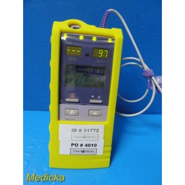 *Battery Status: Not charging, will need REPLACEMENT BEFORE USE *Parameters: Microstream capnograph, SpO2 *CE # 0123 *LCD: Bright *Self Test: Passed *Softpads: Responsive *SpO2 Sensor: Included *Power Adapter: Not included *CO2 lines: Not included *Mount: Not included *Manual: Not Included *Disposables: Not included *Protective Case: Included, Yellow *Please review images and check for compatibility before bidding for the item Package includes:-