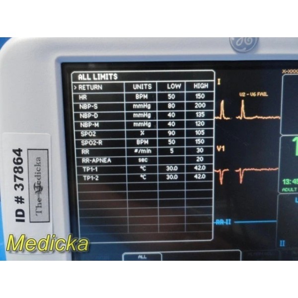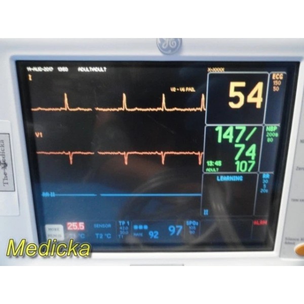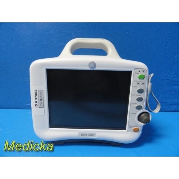 Item: | GE Dash 3000 (IBP, SPO2, TEMP, CO2, NBP, ECG) Monitor W/ NEW Leads |