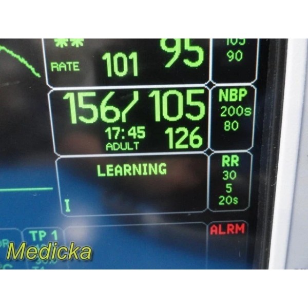 *Signs of usage: Low *Battery: INSTALLED but is DEAD & will need to be REPLACED before use *Parameters: Temp, CO, SpO2 (Masimo), ECG, IBP (Single) *Printer: Installed | Paper included *LCD: In good shape, has a small scratch on it *Trim Knob/Softpads: Intact & functional *Handle: Intact *Dents/Cracks: None noted *Scratches/Scuffs: Yes, few noted *Date & Time: Date is correct, time can be adjusted as per the time zone *Patient Leads: (NEW | OEM | DOM: 2025) -SH3947D NBP Hose W/ Cuff, Adult Ref SC1721-17 -SG5112S ECG Cable W/ 5-Leads, SNAP AHA -SP9310W Resusable SpO2 Sensor -ST1304 Reusable Temperature Probe -SB0407 IBP Adapter Cable *CO2 & IBPS Transducers are NOT included *Power Cord: Included *Stand mount: Included *Manual: Not included *Stand: Not Included *Please review images and check for compatibility before buying. Package includes: