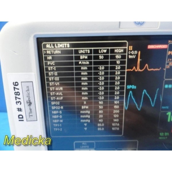 GE Dash 3000 (Masimo SPO2, IBP, TEMP, NBP, ECG,CO) Monitor