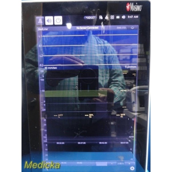 The Masimo Root RDS7A Patient Monitoring System is a modular platform designed to integrate various monitoring technologies such as the Radical-7 SpO₂/CO-Oximeter and SedLine Brain Function Module. It offers intuitive operation, multi-parameter display, and advanced connectivity for clinical applications. The unit powers on and initializes successfully but intermittently loses connection with Radical-7 or SedLine modules, indicating that preventive maintenance or recalibration may be required before use.