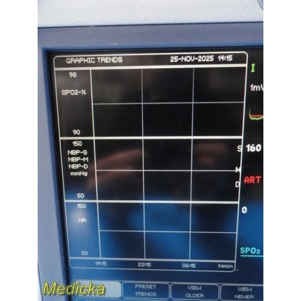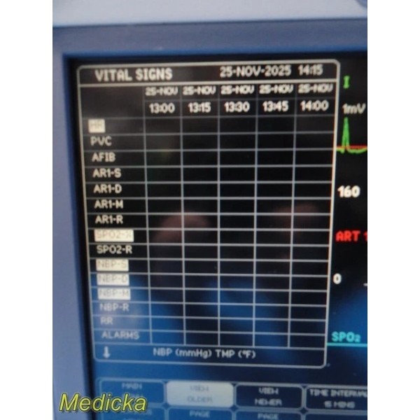 - ECG SpO₂ – Masimo type NIBP Respiration Temperature (T1) ART1 (Invasive Blood Pressure #1)