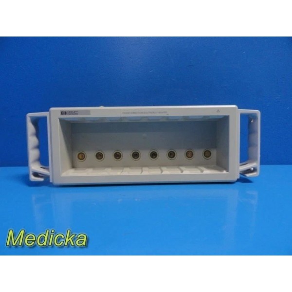 HP M1041A 8-Slot Patient Monitoring Module Rack / Module Server. This rack supports multiple HP / Agilent / Philips monitoring modules and interfaces with compatible patient monitoring systems using the appropriate interface cable and mounting hardware. Options Installed: 0104P2ABA