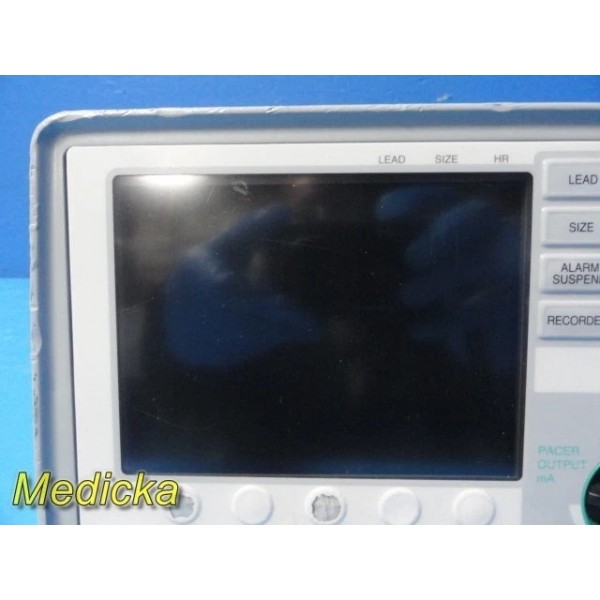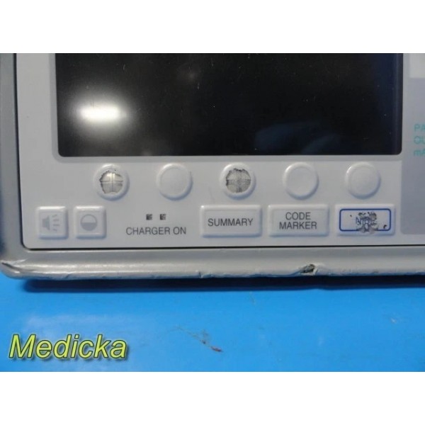 - Ports: ECG, NIBP, SpO₂, and multifunction ports intact. CO₂ port is pushed inside/broken.