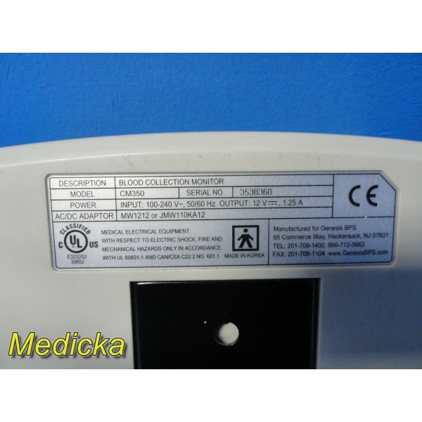 Genesis CM350 Blood Collection Monitor W/ Mounting Clamp *Tested* ~ 20756