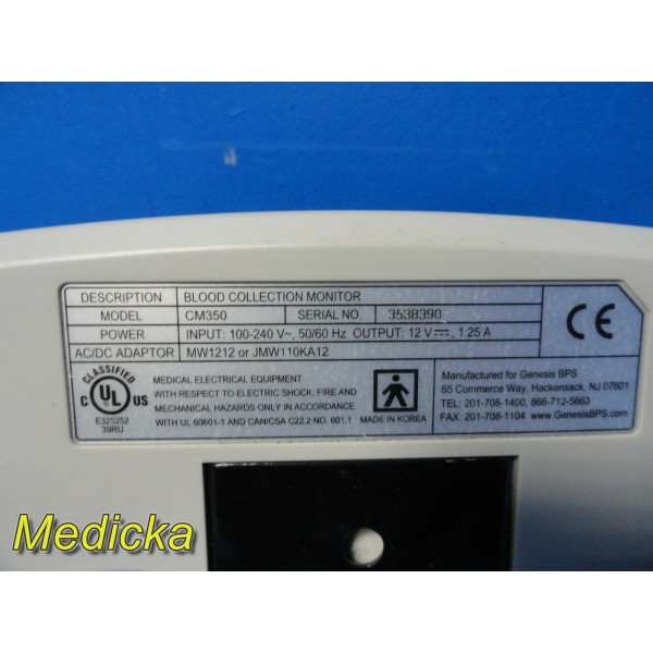 Genesis CM350 Blood Collection Monitor *Tested & Working* ~ 20754
