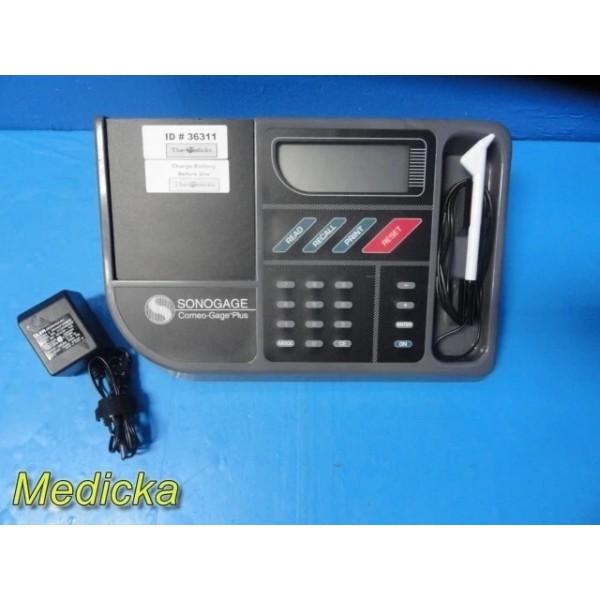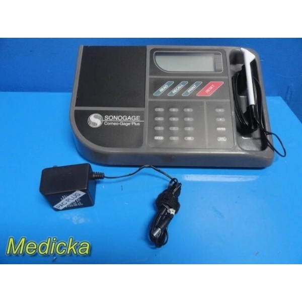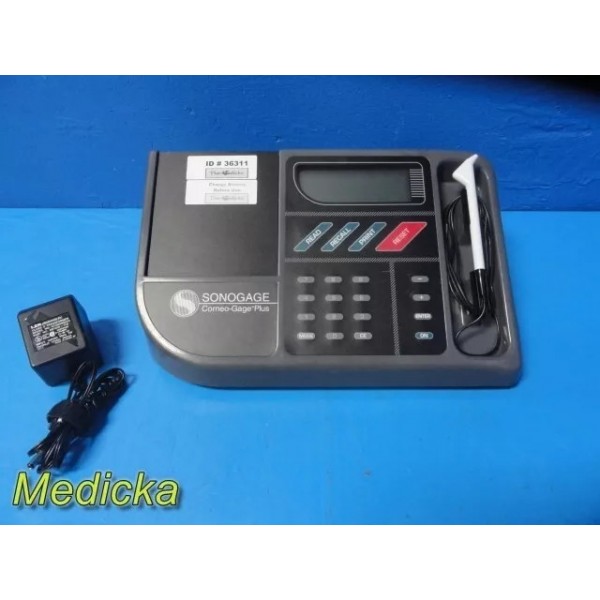 The Sonogage, Inc. Corneo-Gage Plus Pachymeter is a specialized ultrasound device used to measure corneal thickness (pachymetry) with high precision. It is commonly used in ophthalmology and optometry to assess corneal health, diagnose conditions such as keratoconus, and determine suitability for refractive surgery like LASIK.