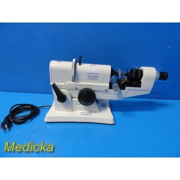 This is a well-maintained OptiSource Axis 221 Manual Lensmeter, ideal for verifying sphere, cylinder, axis, and prism measurements in prescription lenses. All primary components are intact and functional, with excellent cosmetic condition. Suitable for use in optical practices, laboratories, or educational settings.