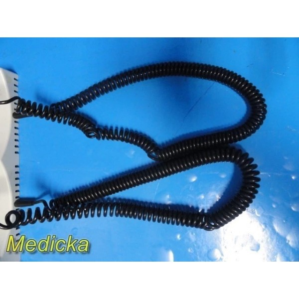 Pre-owned diagnostic wall transformer, tested and in good working order. Includes 2x handles with coiled cables, a Heine K180 ophthalmoscope head, and a compatible (Non Heine Type) otoscope head. Shows moderate cosmetic wear but functions smoothly.