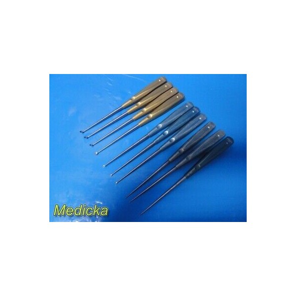 10 Life Instrument Assorted American Rainbow Curettes, 10", Angled & Straight