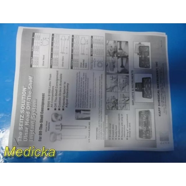 Item: | KAPP Surgical Instrument CO SEITZ Solution Ulnar Head Assorted Instruments Set |