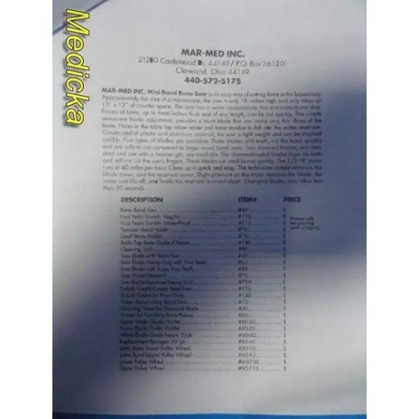 Mar-Med Inc Model No 80 Bone Band Saw ~ 35983