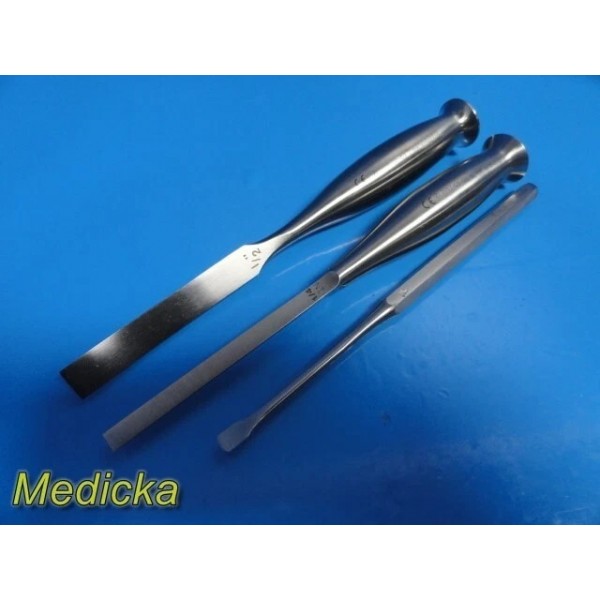 3X Zimmer Orthopedic Instruments Curved/ Straight Osteotomes & Elevator ~ 37578