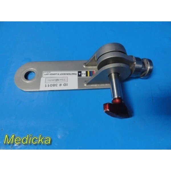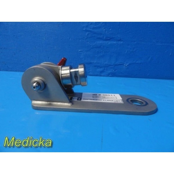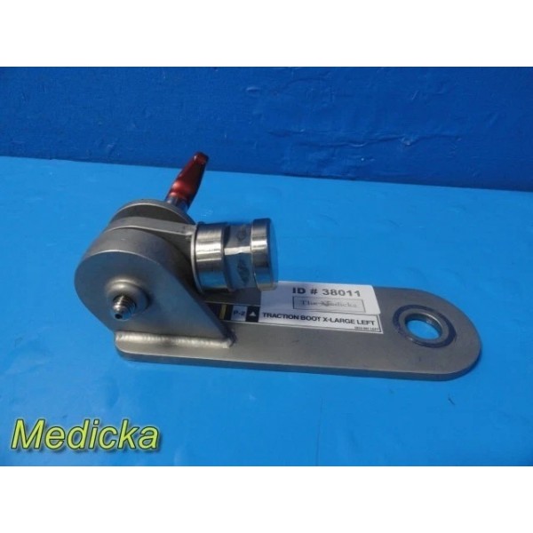 This listing is for a Mizuho OSI Traction Boot Plate, Extra-Large Left. Designed for use with orthopedic traction boots and tables, the plate allows secure connection between the traction boot and table system.