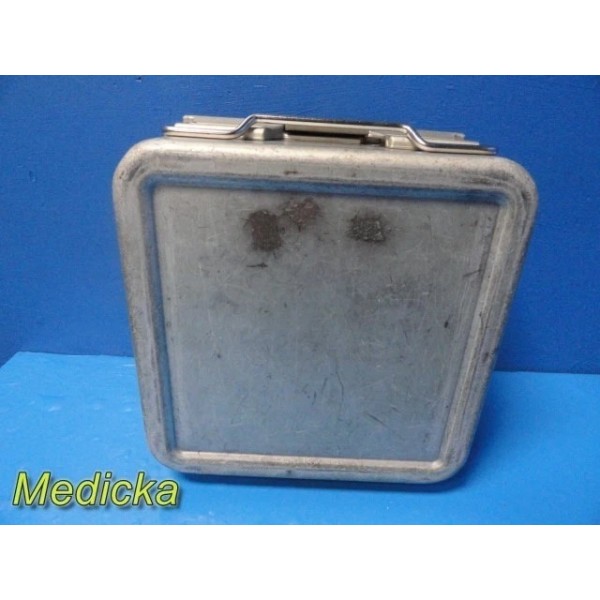 - Aesculap Container: Solid with scratches/scuffs from use; handles and locks intact; no retention plate included.
