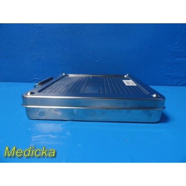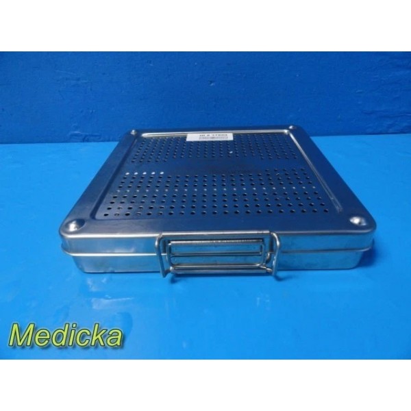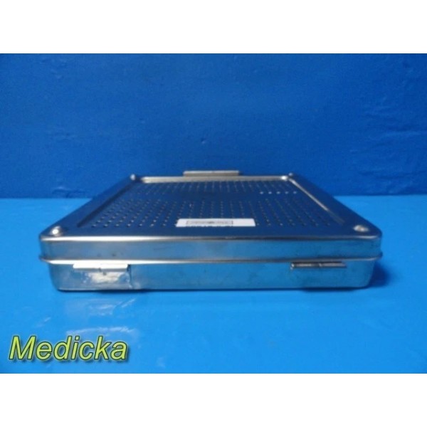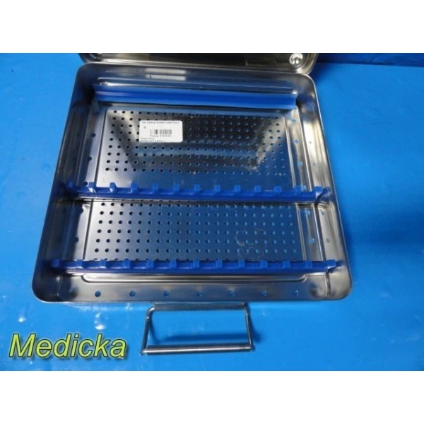 - Case: Sterilization container Ref. 46-3145 CE in good condition, perforated design, with blue silicone instrument holders and intact locking latch.