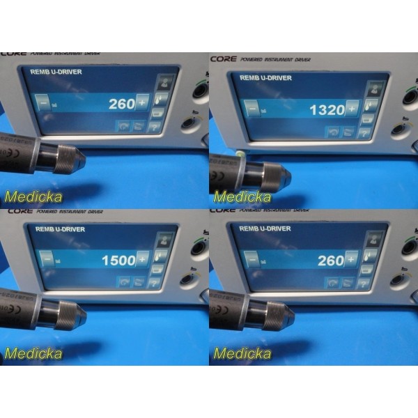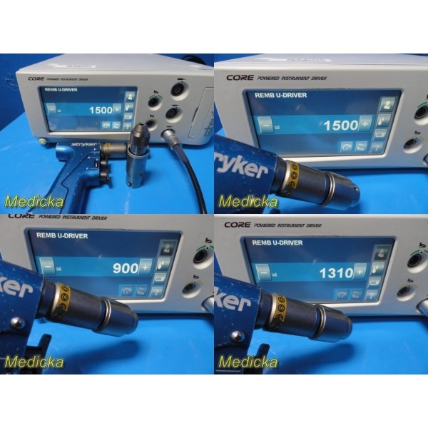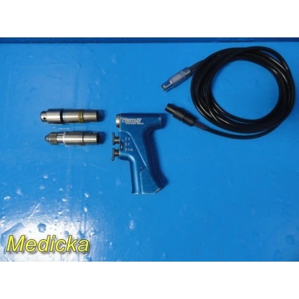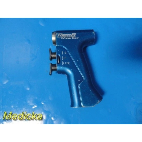 This listing is for a Stryker REMB Universal Driver system complete with a 12 ft interface cable and two tested drill attachments (Synthes Drill Ref. 4100-110 and 1/4" Drill Ref. 4100-131). The system has been tested with a Stryker CORE power console (not included) and shows good operational performance.