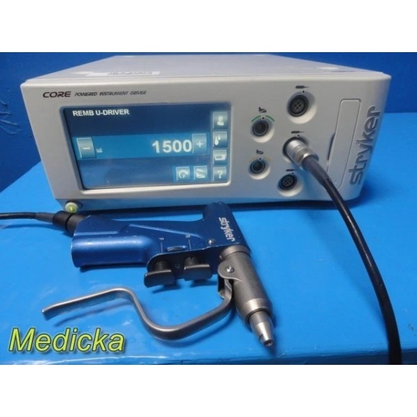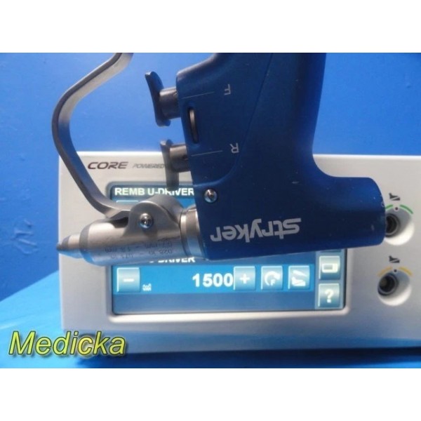 This listing is for a Stryker REMB Universal Driver system with a 12 ft interface cable and a Stryker Wire Collet attachment (Ref. 4100-062-000). The set has been tested with a Stryker CORE power instrument driver console (not included) and demonstrates excellent functionality.