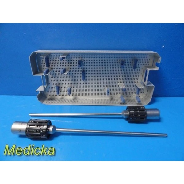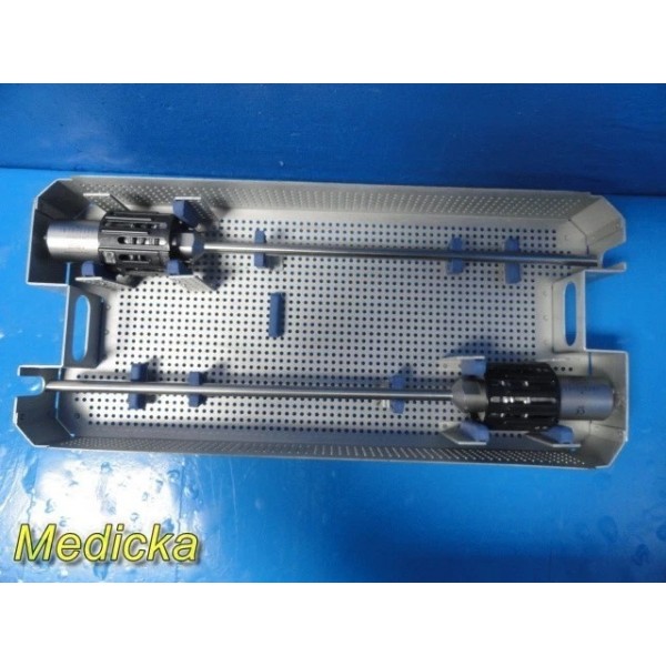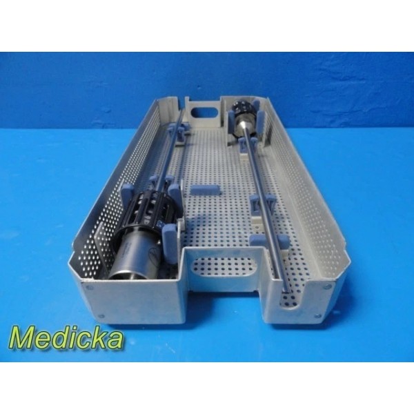 A lot of two Intuitive Surgical 370891-04 da Vinci robotic endoscopes with criginal fitted storage container. These 30" 12 mm endoscopes are designed for use with the Intuitive da Vinci robotic platform. Both scopes are in good cosmetic condition with intact shafts, clamps, and optics.