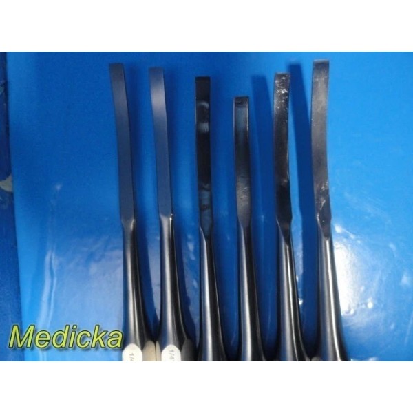 Item: | 6X BD V. Mueller 0S4295-011 & VM81-4731 Hibbs Osteotomes; 6mm Blade, 9½" |