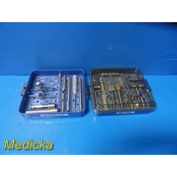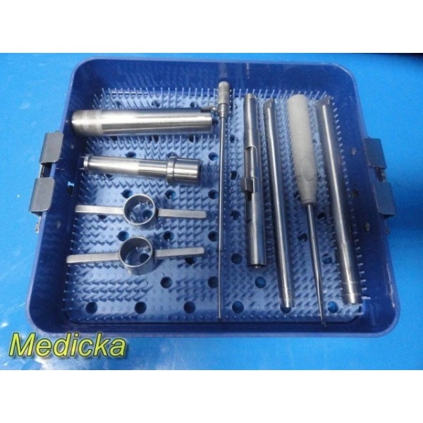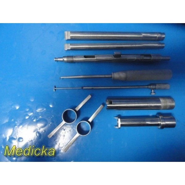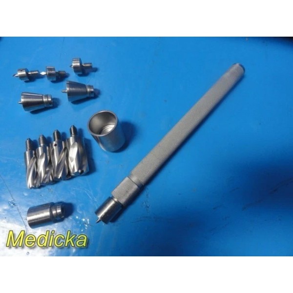 - All instruments are mechanically intact with smooth motion across threaded, rotating, and sliding parts. Cutting and reaming edges appear sharp with normal cosmetic wear from prior use. Stainless surfaces are bright and free of corrosion or cracks.