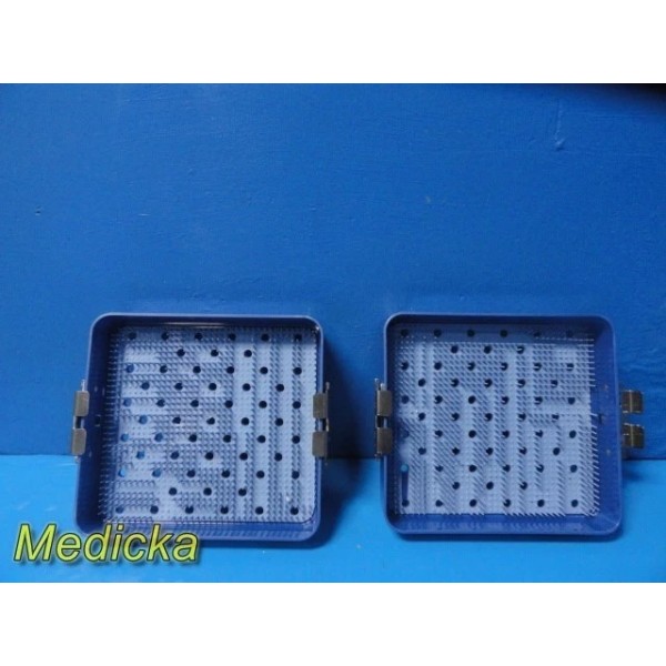 Housed in a two-tier sterilization tray system, where the top and bottom trays interlock via side hinges and share a single fitted lid, forming a compact self-contained unit.