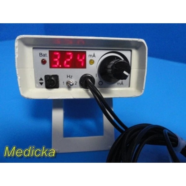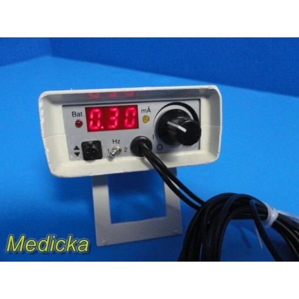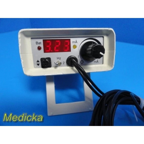 *It features a frequency toggle (1 Hz / 2 Hz), mA adjustment knob, bright digital display, and attached black-and-red lead cable.