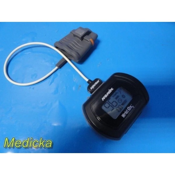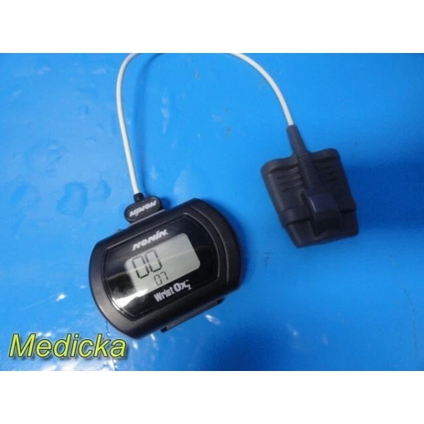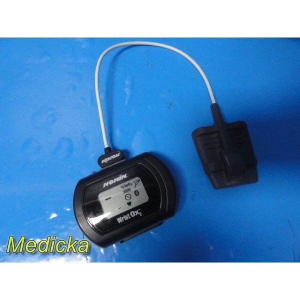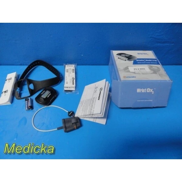 Short description... Pre-owned Nonin WristOx2 Model 3150 wrist-worn Bluetooth pulse oximeter set with reusable soft sensor, wristband, brand new AAA batteries, instruction manual, and original packaging. Fully functional, CE marked, and in excellent cosmetic condition. Device Information: - Version: Ver. 008