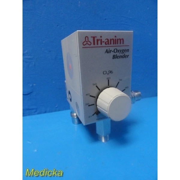 The Tri-anim Air-Oxygen Blender (P/N 10424) is a precision gas mixing device designed to deliver a controlled mixture of medical-grade oxygen and air, adjustable from 21% to 100%. It is widely used in clinical and hospital settings for neonatal, pediatric, and adult respiratory care applications where precise FiO₂ delivery is required.