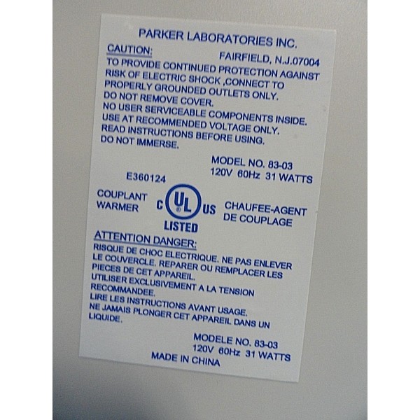 Item: | PARKER LABS 8303 THERMASONIC ULTRASOUND GEL WARMER, THREE BOTTLE, 120V |