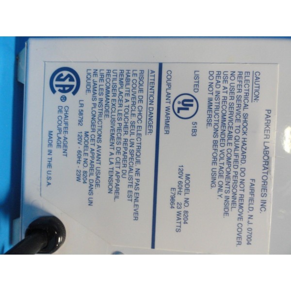 Item: | PARKER LABORATORIES 8204 THERMASONIC ULTRASOUND GEL WARMER |