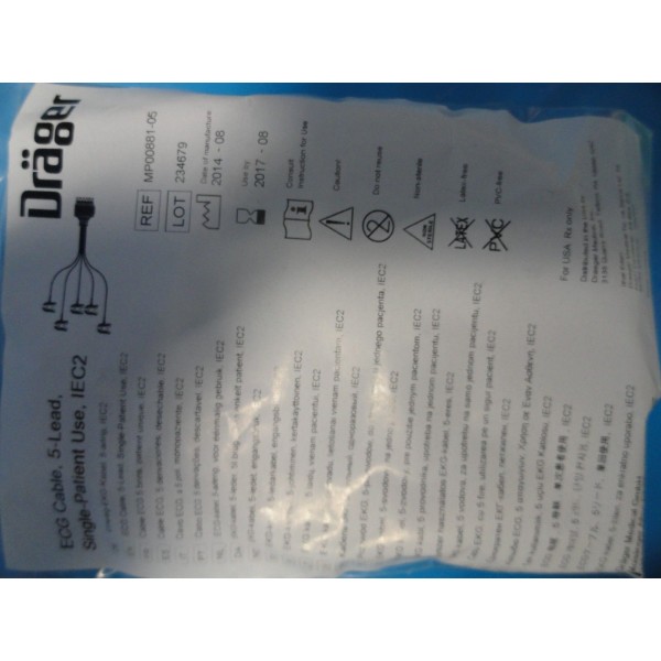20 x Drager Medcial MP00881-05 ECG Cable, 5-Lead, Single Patient Use, IEC2~15306