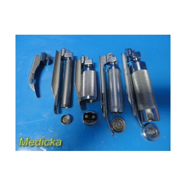 | Notes: | “Lot Sale / Being sold as a Lot of 5 fiber optic laryngoscope blades with 4 handles / No batteries included with the handle / May have signs of usage on them since they have been owned previously ” |